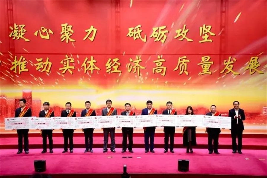 2020年4月10日上午,平度市促進實體經(jīng)濟高質(zhì)量發(fā)展大會在市民服務(wù)中心報告廳隆重召開,我公司榮獲“品牌質(zhì)量建設(shè)獎”和“技術(shù)改造獎”兩項獎項。公司總經(jīng)理張海德代表公司出席大會,并接受獎牌。